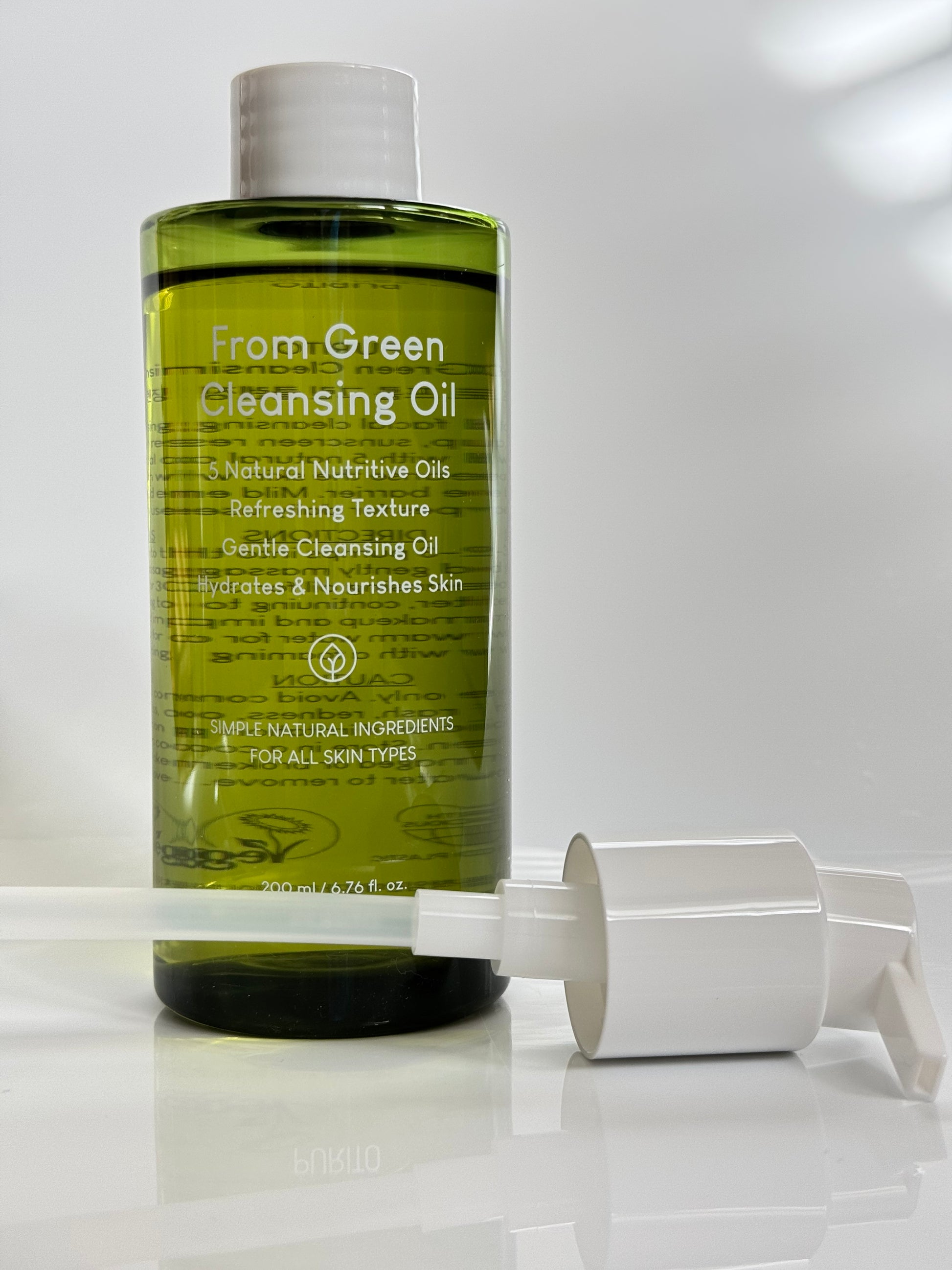 From Green Cleansing Oil is a gentle cleanser that contains only five oils derived from nature. It is excellent for removing heavy, oily makeup and sunscreen without irritation and stinging sensation. The hydrophilic oil emulsifies perfectly, gently breaking down any makeup along with impurities and sebum, that is deep in the pores.