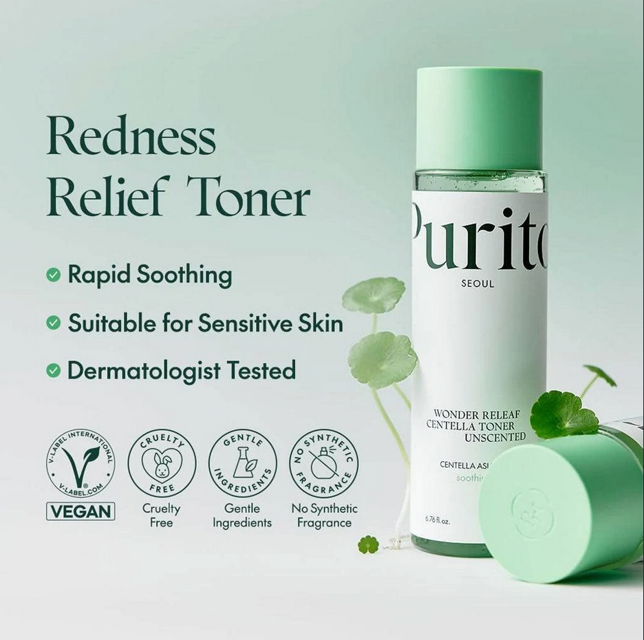 PURITO Centella Unscented Toner 200ml offers soothing and hydration to the skin while working to strengthen the skin barrier.