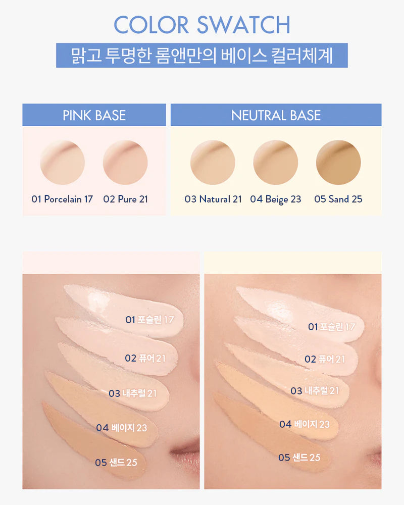 05.SAND 25: Healthy, warm neutral beige tone. Suitable for those who want to achieve a healthy and warm toned skin