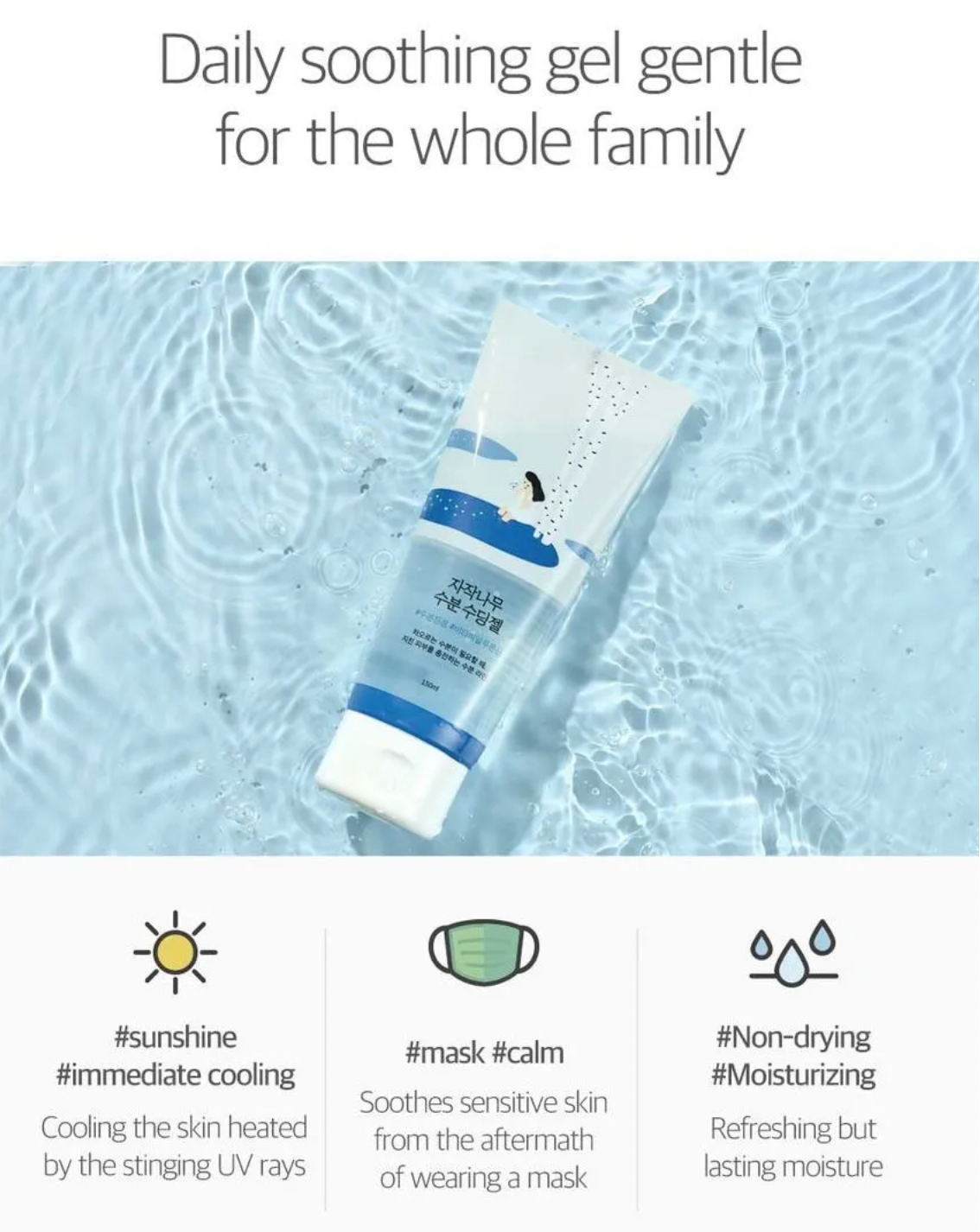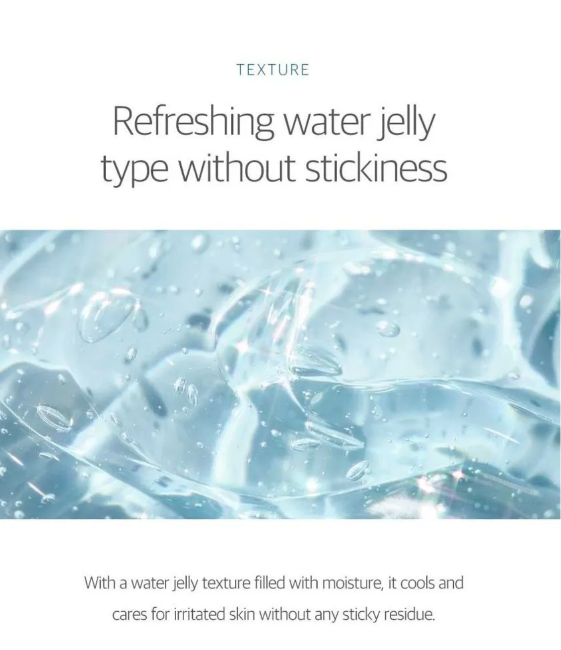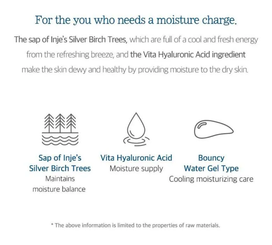 White birch water and Vita hyaluronic acid provide moisture to dry skin and sooth irritated skin. The Soothing Cooler ingredient, which consists of five plant extracts, has a water jelly texture full of moisture, so it takes care of irritated skin or dry skin without sticky residue. Suitable for all skin types.