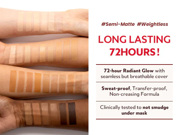 72-Hour Endurance: Keeps makeup flawless without fading, cracking, caking, creasing, or transferring.