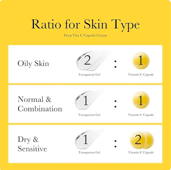 Medicube Deep Vita C Capsule Cream is a powerful moisturizer that brightens, evens skin tone, and reduces the appearance of dark spots. Its dual-texture formula blends Vitamin Capsule Cream with a transparent gel for a customizable, non-irritating application. Sea Buckthorn Extract and other essential vitamins work together to target dullness and enhance hydration for healthier skin.